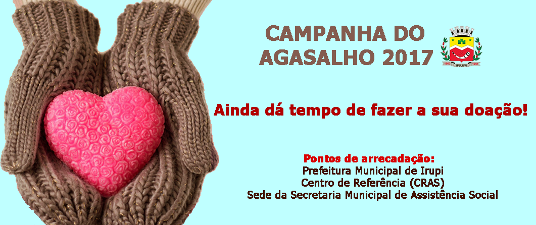 A Secretaria Municipal de Assistência Social, Habitação e Cidadania de Irupi, por meio do Centro de Referência de Assistência Social (CRAS-Irupi), estará cadastrando as famílias que necessitam de agasalhos na sede do CRAS na próxima quinta-feira (13), a partir das 13h.
