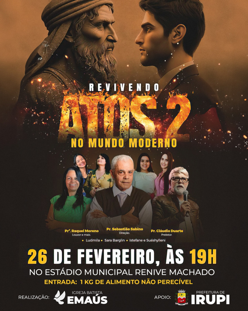 A Prefeitura de Irupi tem a honra de convidar você para um evento que promete ser marcante: “Revivendo Atos II no Mundo Moderno”, realizado pela Igreja Batista Emaús, sob a liderança do Pastor Sebastião Sabino. Esta... Leia mais
