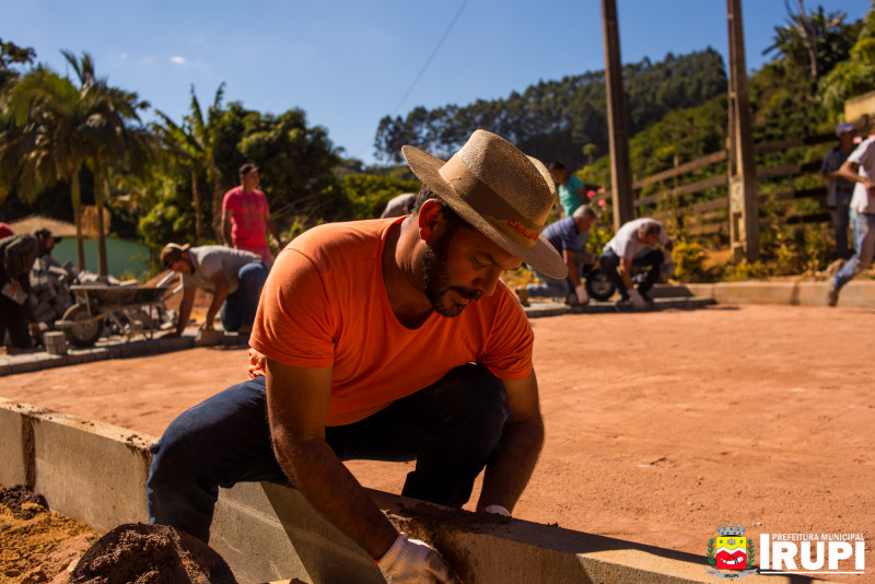 Mutirão de calçamento no Córrego Aventureiro